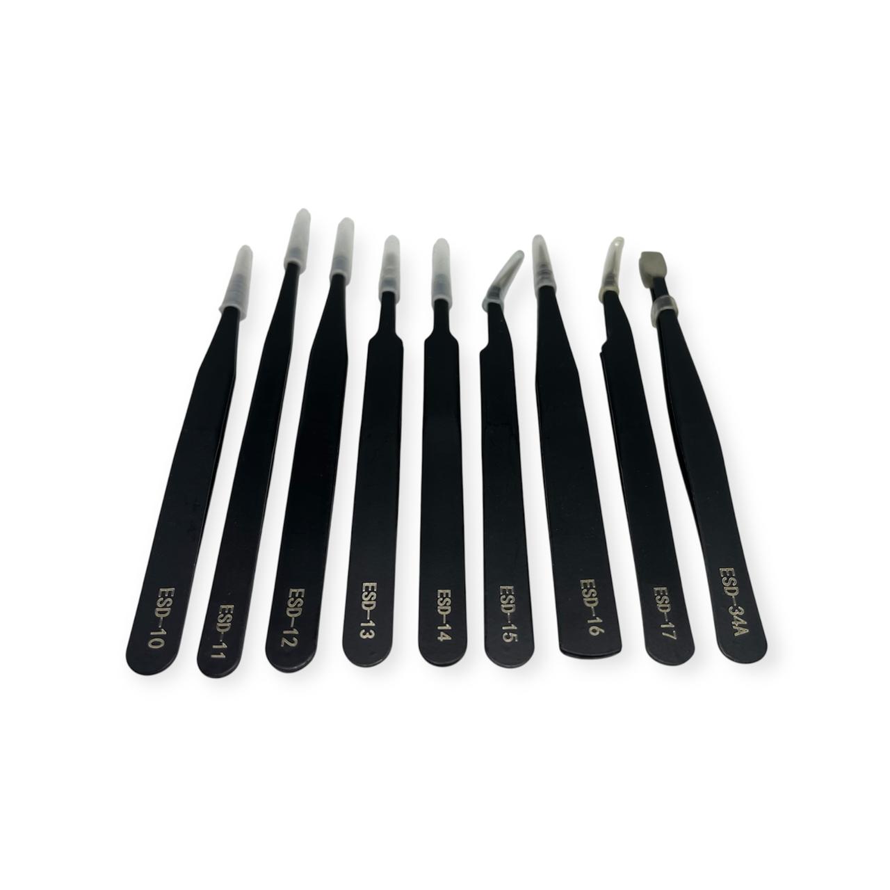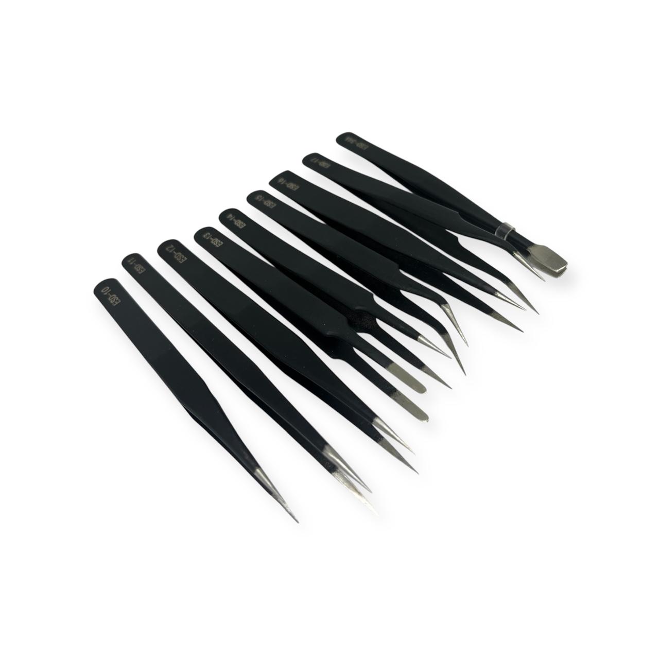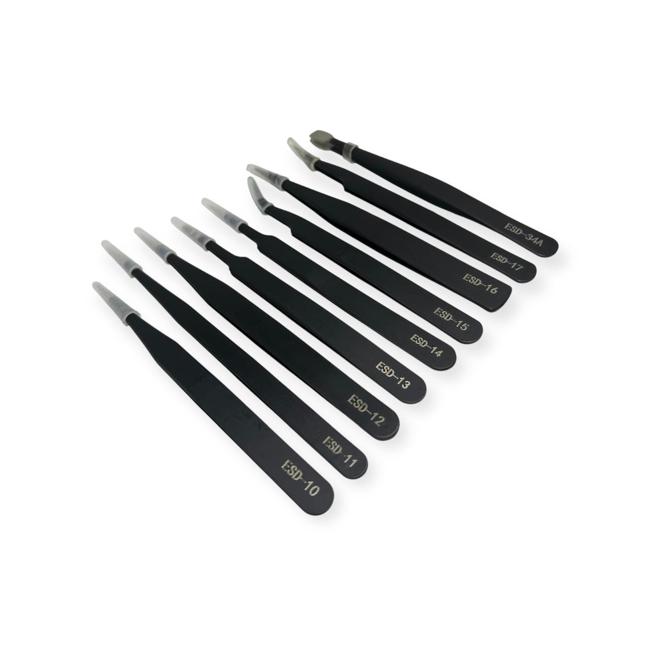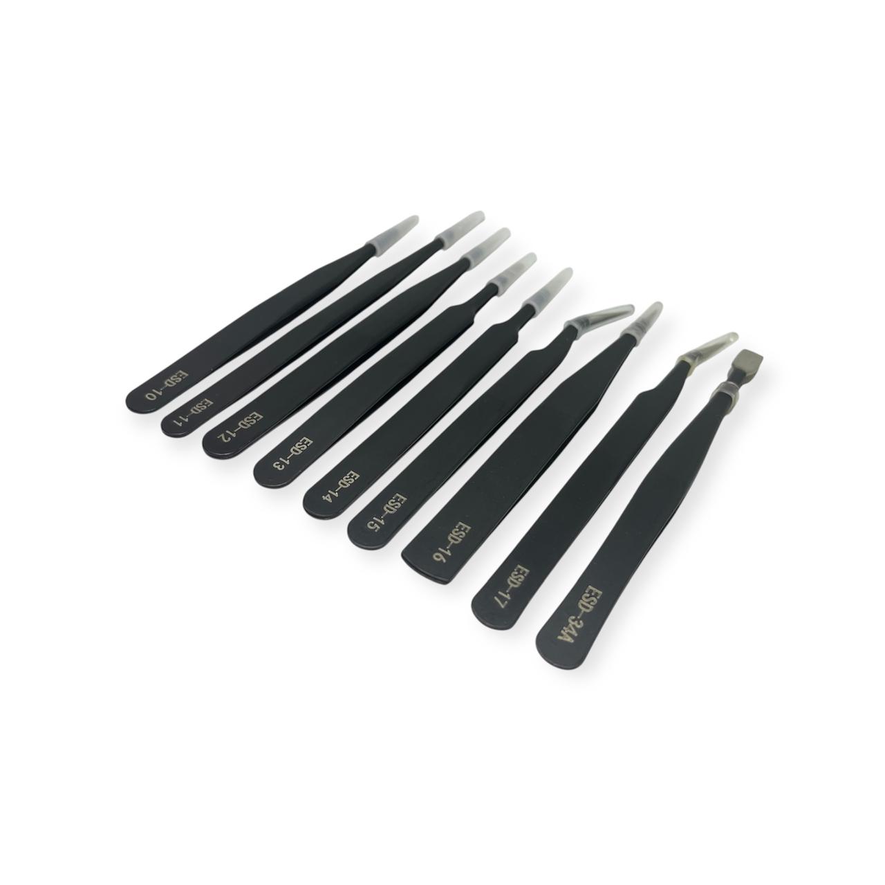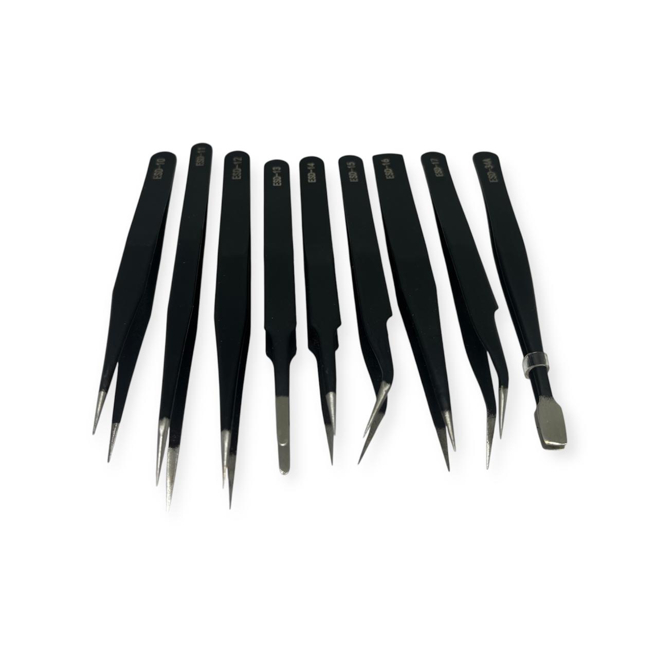 Kit Pinzas Antiestáticas de Precisión 9 Piezas