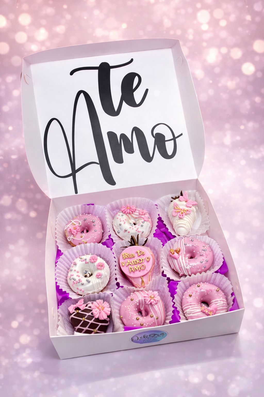 Sorprende con un regalo dulce y fotogénico. La Caja x9 Mini Donas + Fresas con Chocolate combina dos favoritos: mini donas decoradas y fresas frescas bañadas en chocolate premium, en una presentación elegante lista para entregar.